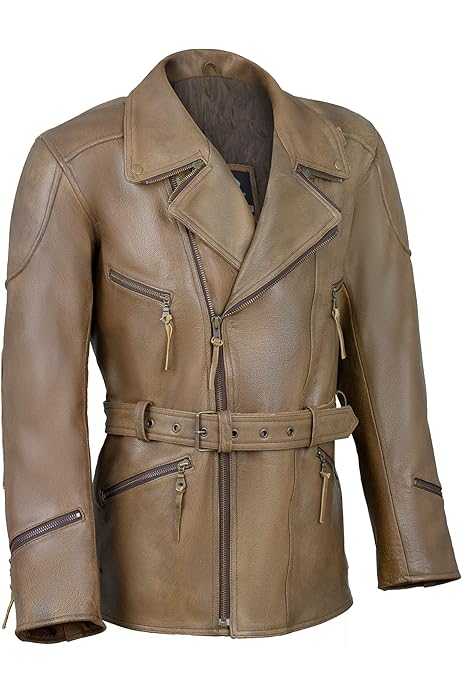 Realskin Mens Brown 3 4 Motorcycle Biker Long Cow Hide Leather Jacket Xs Chest Size 34 35 Amazon Co Uk Fashion