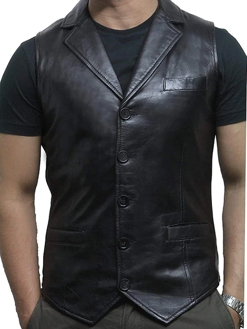 Waistcoat Lambskin Leather Men Button Black Western 100 Orignal Vest Coat Jacket 194 81 Picclick Au